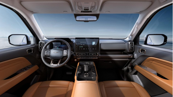 与前脸的霸气造型相呼应,车身侧面腰线硬朗流畅。「大地堡垒」梯形轮眉,坚固实用,硬派气息不彰自显;「万山洞天」车侧后窗,视觉通透,让用户的视野中能够容纳更多美景。